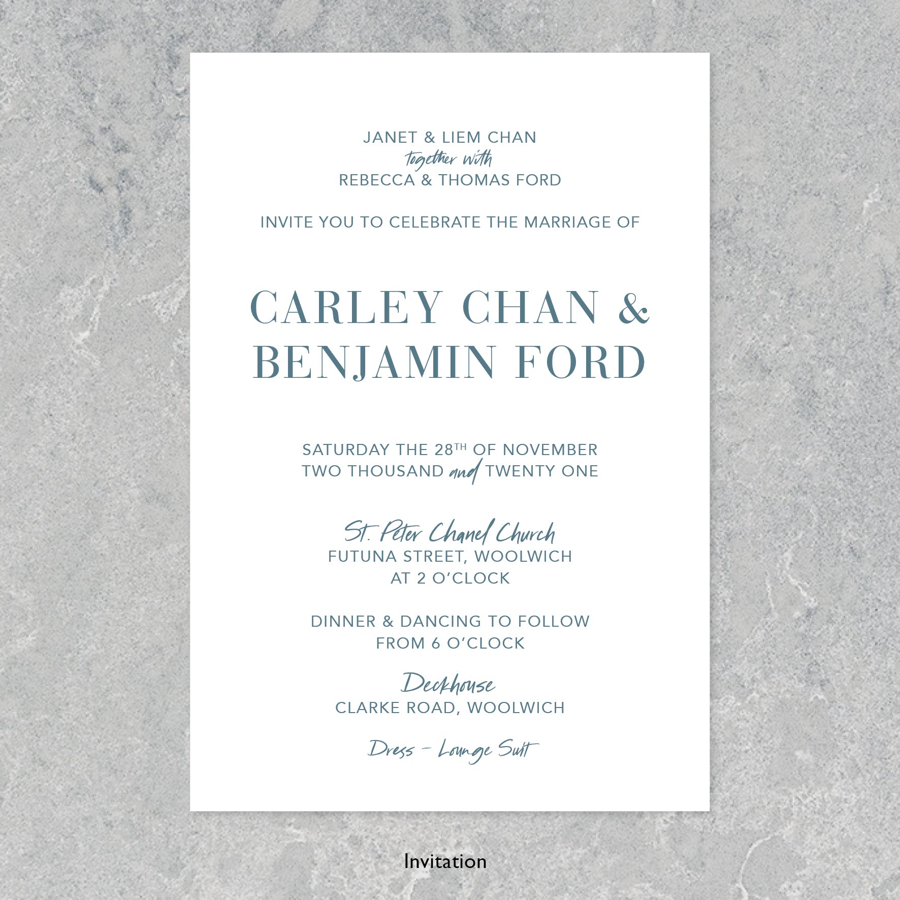 Combining script, modern and traditional fonts, the Cove suite is perfect for couples wanting to convey a traditional yet modern tone for their wedding day.
