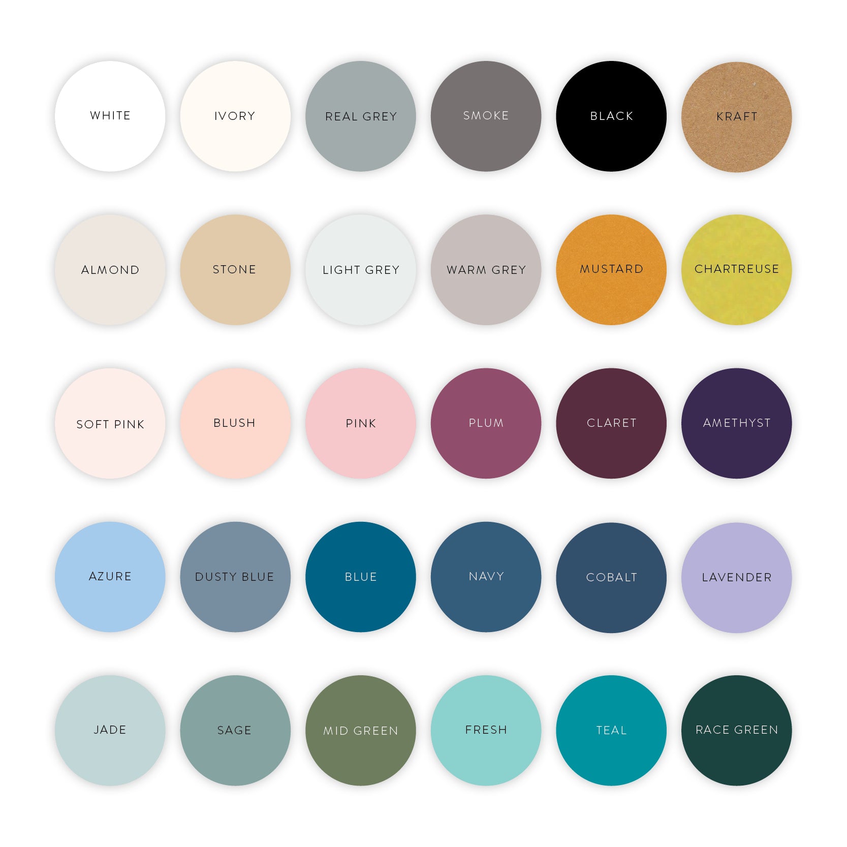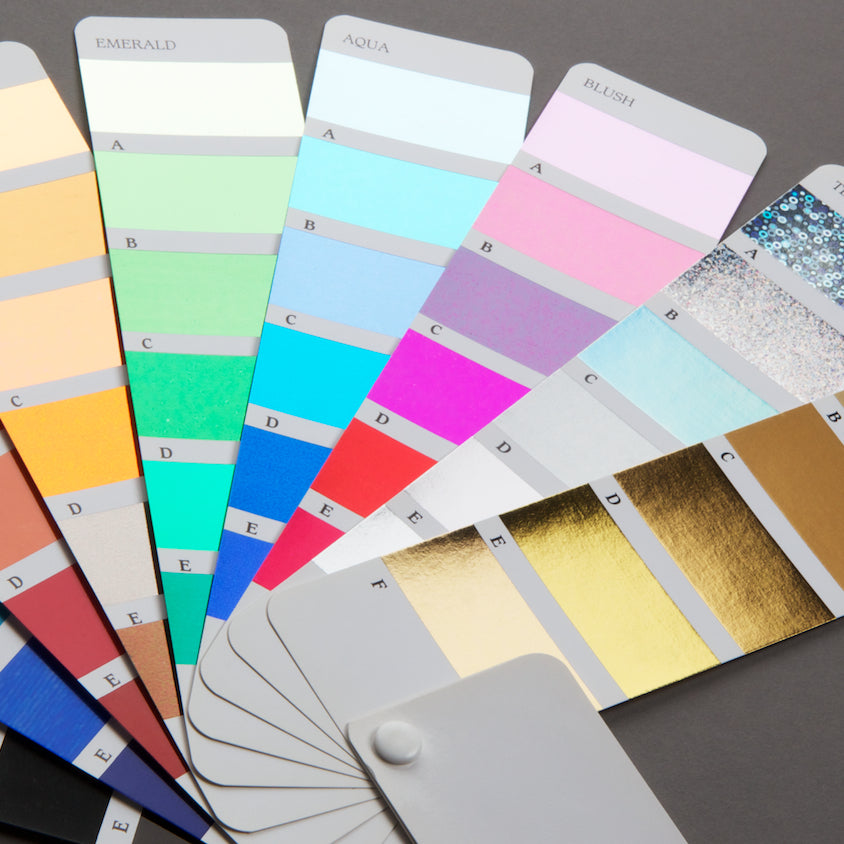 We hand mix all of our inks using the Pantone Solid Uncoated Swatch guide. This means we can mix thousands of custom colours to match any of our paper stocks, envelopes or a specific swatch provided.