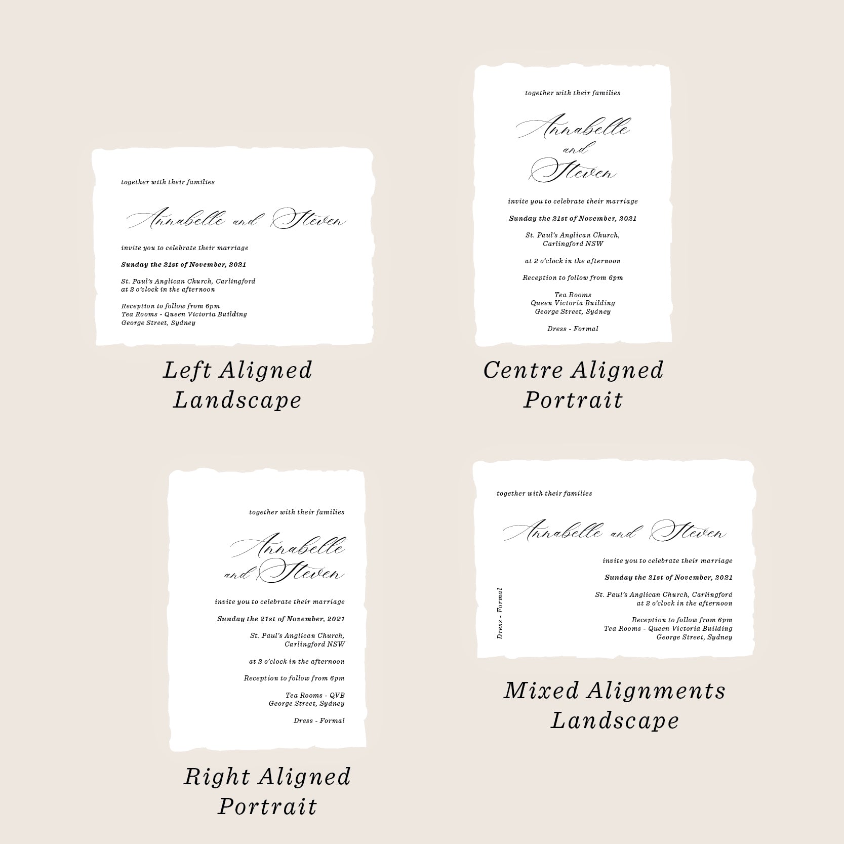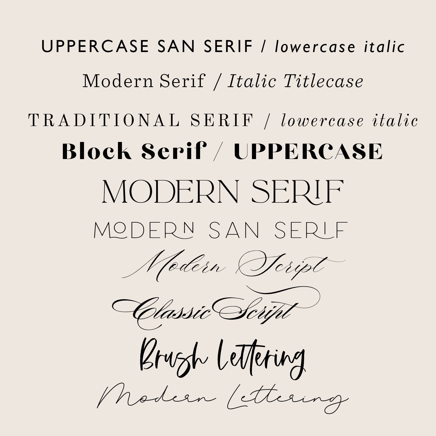 We have an extensive library of fonts, both classic and modern day options. We add to our library regularly and include them in almost all of our designs. For our semi-custom and custom designs we work with calligraphers and hand letterers to create a custom look for your stationery, mainly names and heading details paired with a font.