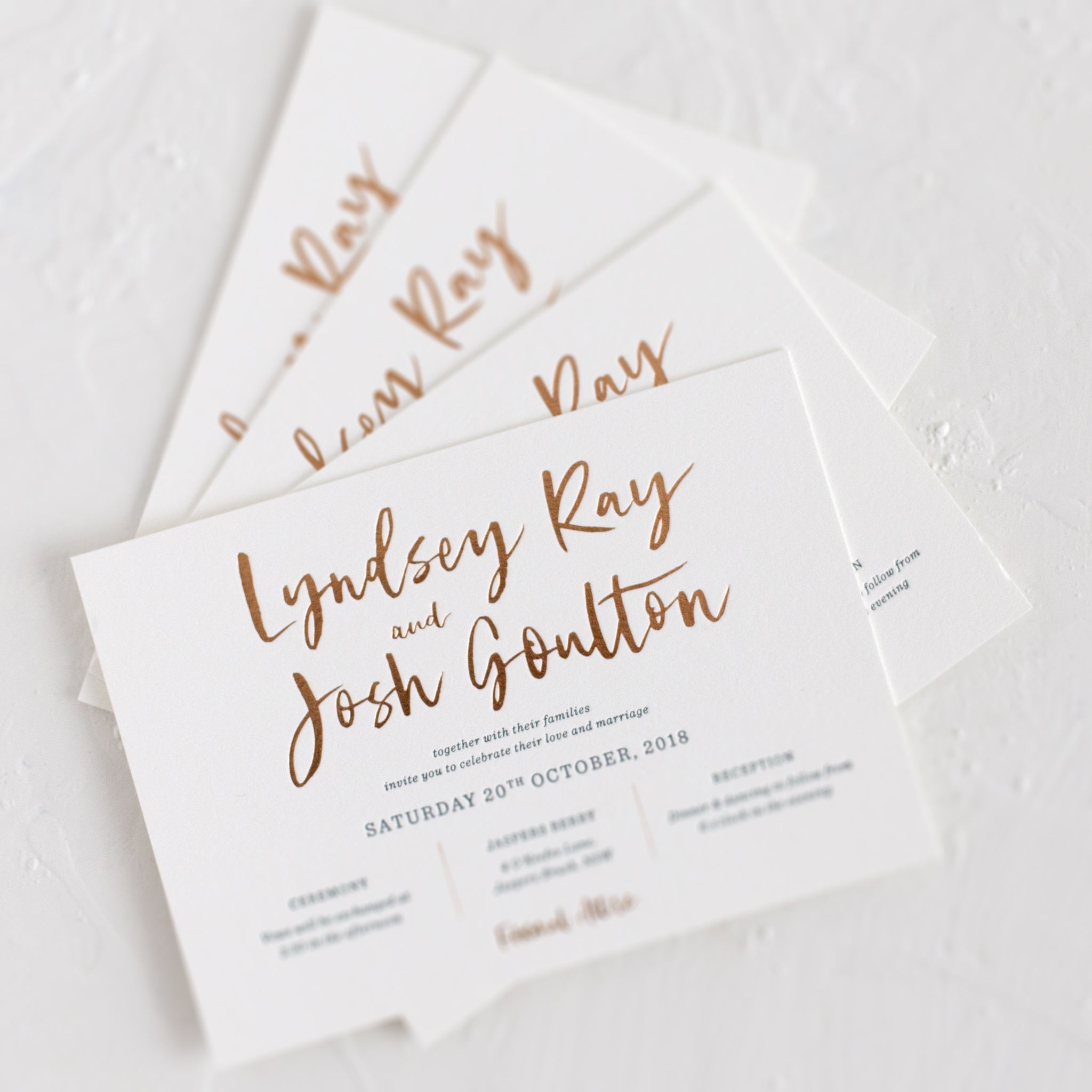 All designs are flexible with colours, paper stocks, printing methods and embellishments giving you the ability to have your stationery as simple or extravagant as you want.